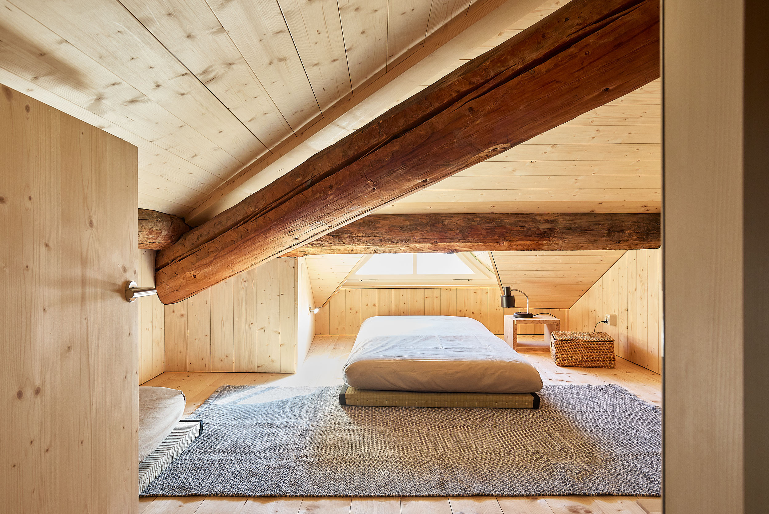 - 1 Dachzimmer mit zwei japanischen Betten (Futons/Tatami»)