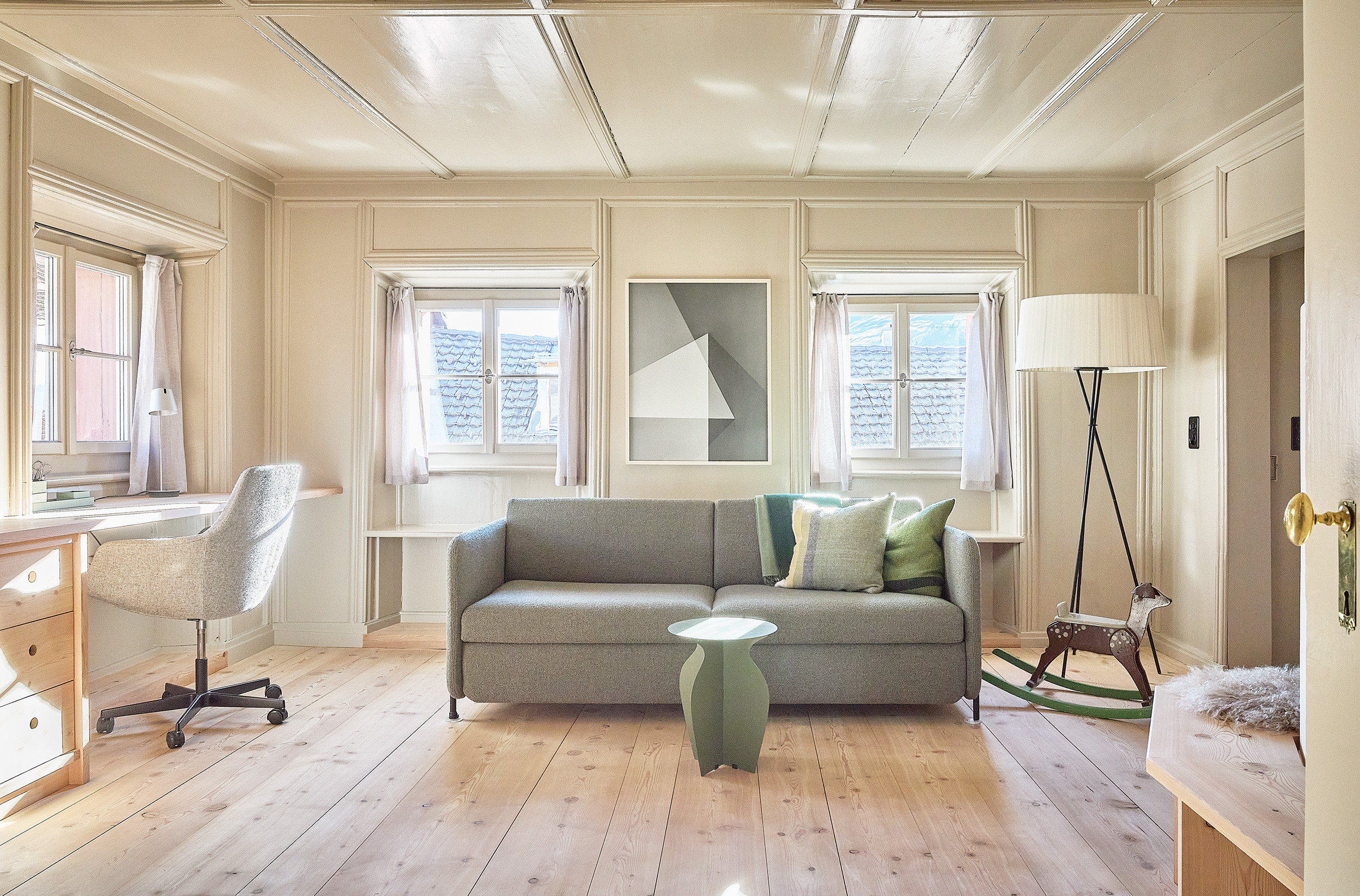 Heute ist die denkmalgeschützte Casa Defilla ein stilvoller Rückzugsort für Menschen mit Gespür für Baukultur, Geschichte und Ästhetik. Sie bietet Platz für bis zu acht Personen, inklusive einer charmanten Dachkammer für zwei Kinder.