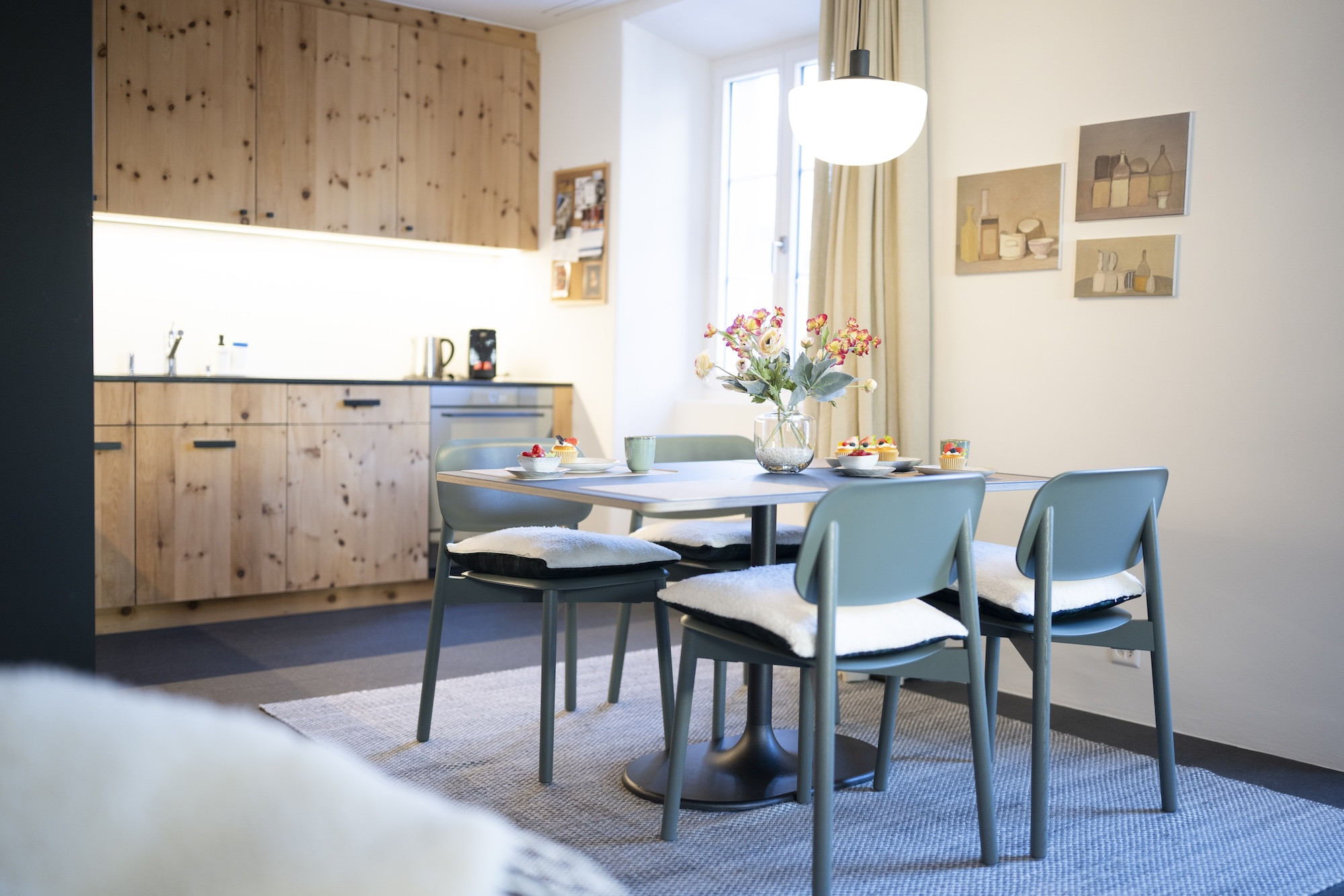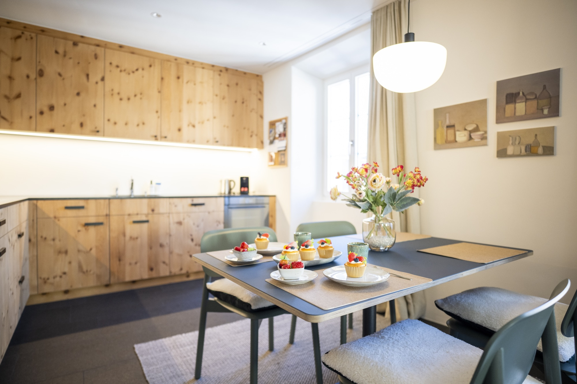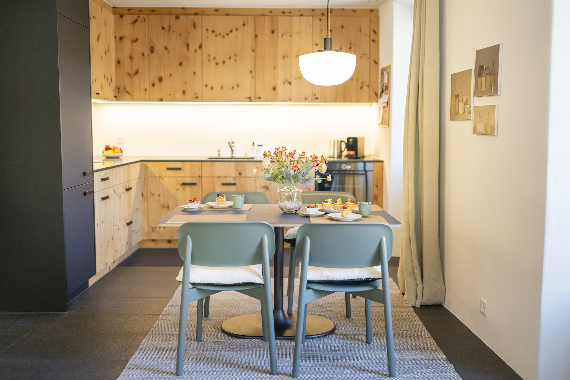 Die 75m2 grosse Wohnung wurde mit viel Liebe zum Detail umgebaut und geschmackvoll eingerichtet. Die gut ausgestattete Wohnküche, ursprünglich der Piertan des Engadinerhauses, ist das Herzstück der Wohnung und lädt zum Kochen und Verweilen bei gutem Essen und einem Glas Wein ein. Hier liegt noch der alte Holzboden! In der original Arvenstube aus dem Jahr 1817 kann man sich bei einem guten Buch vom Ski- oder Wandertag erholen. In den Wohn- und Schlafräumen liegt ein schöner, zum Teil noch originaler, Holzboden. Das Schlafzimmer befindet sich in der früheren „Cha da fö (Küche). Hier kann man noch die traditionelle Krümmung an der Aussenwand des Schlafzimmers erkennen. Im Bad hat es Platten. Die Wohnung eignet sich nicht für Kinder.
