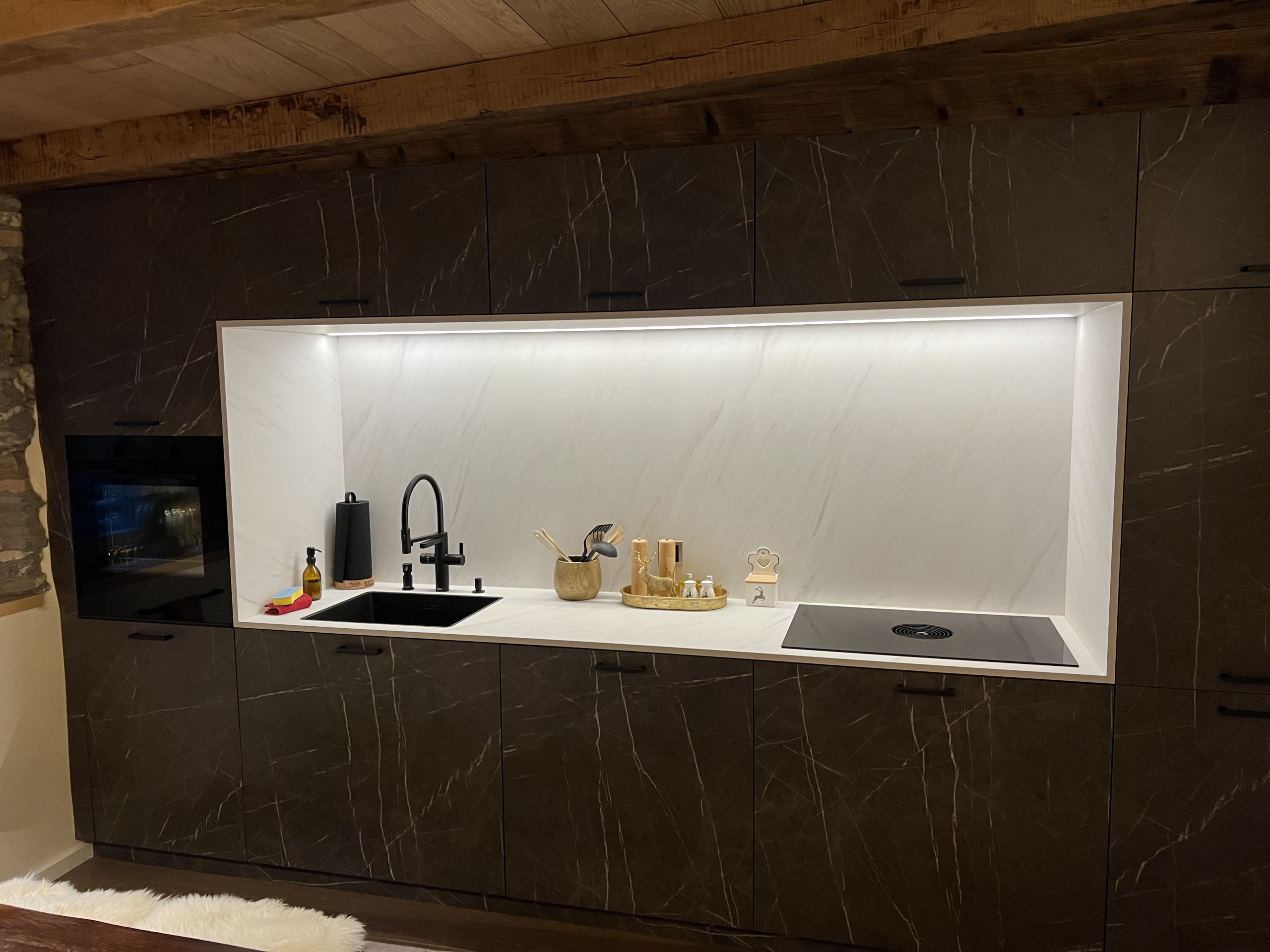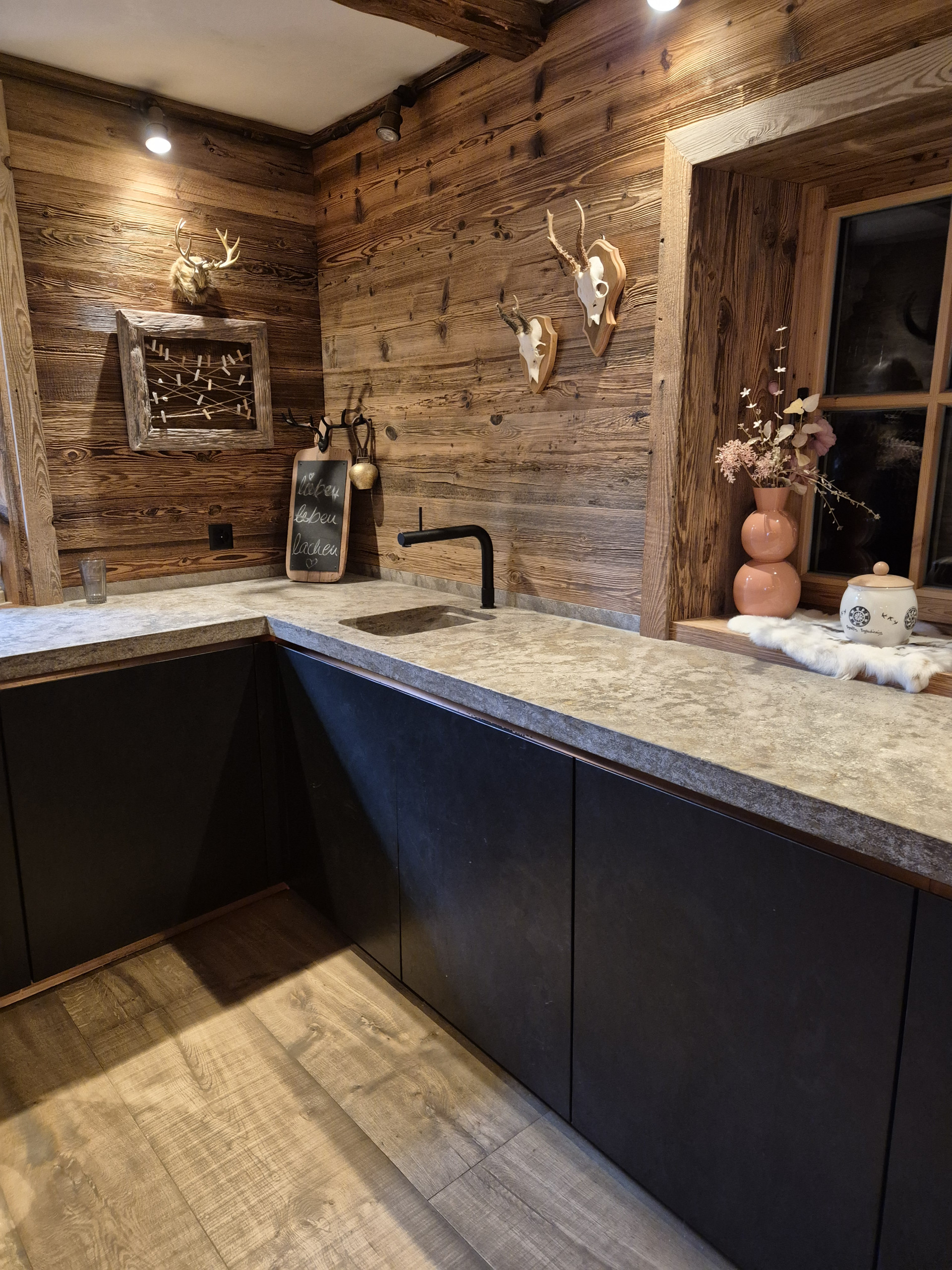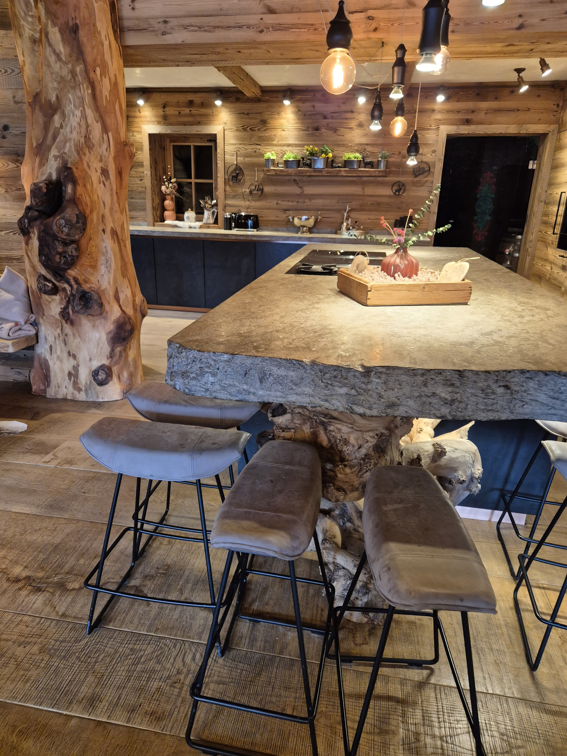 Die Offene Küche mit Induktions-Kochfeld ist ausgestattet in einen Kühlschrank, ein Backofen, Gefrierschrank, eine Spülmaschine, Geschirr/Besteck, Kochutensilien, eine Kaffeemaschine, einen Toaster, einen Wasserkocher, eine Saftpresse und Raclette.